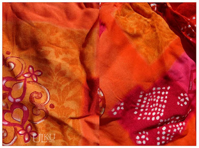 Diese beiden verrückten weiten Hosen muss ich euch auch unbedingt noch zeigen - wieder gefunden beim Räumen, ungebügelt abgelichtet, ein Flohmarktkauf für 50 Cent! Nee, anziehen werde ich sie ganz sicher nicht, aber die Stoffe haben mich gereizt. Satt orange-rot, zumindest links.