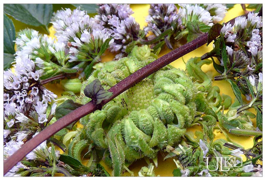 minze wächst hier am bach und ich trinke ab und zu mal tee davon. ein mandala mit blättern und blüten ist aber auch sehr schön!!