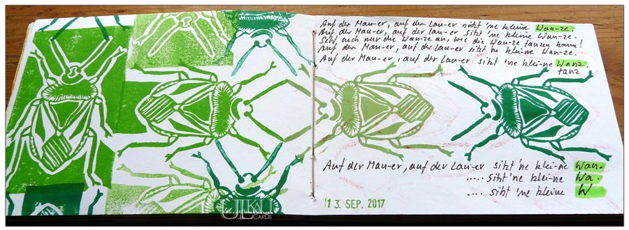wahnsinn dieser Stempel den du geschnitzt hast !!!! die Wanzen sehe ich auch gerne an so lange sie nicht auf mich rumkrabbeln.